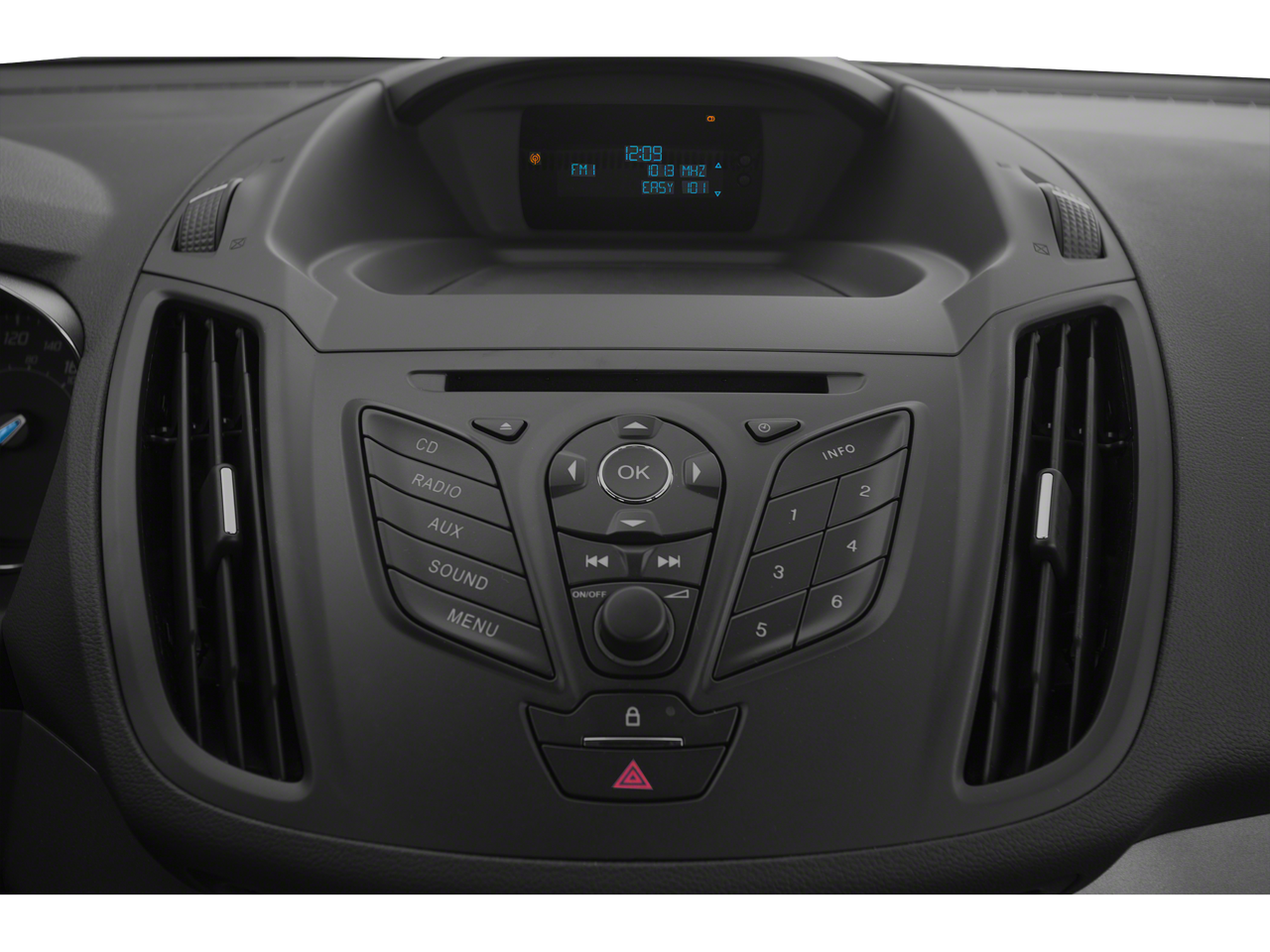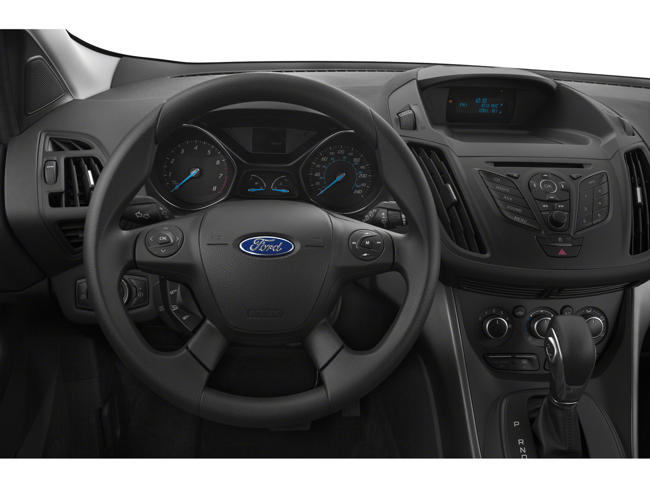 This car is well equipped with the following features: 3.51 Axle Ratio, 4-Wheel Disc Brakes, 6 Speakers, ABS brakes, Air Conditioning, Alloy wheels, AM/FM radio: SiriusXM, Brake assist, Bumpers: body-color, CD player, Cloth Buckets w/60/40 Split Rear Seat, Compass, Delay-off headlights, Driver door bin, Driver vanity mirror, Dual front impact airbags, Dual front side impact airbags, Electronic Stability Control, Exterior Parking Camera Rear, Four wheel independent suspension, Front anti-roll bar, Front Bucket Seats, Front Center Armrest, Front fog lights, Front reading lights, Fully automatic headlights, Illuminated entry, Knee airbag, Low tire pressure warning, Occupant sensing airbag, Outside temperature display, Overhead airbag, Overhead console, Panic alarm, Passenger door bin, Passenger vanity mirror, Power door mirrors, Power driver seat, Power steering, Power windows, Radio data system, Radio: AM/FM Single CD/MP3, Rear anti-roll bar, Rear seat center armrest, Rear window defroster, Rear window wiper, Remote keyless entry, Speed control, Speed-sensing steering, Split folding rear seat, Steering wheel mounted audio controls, SYNC Communications & Entertainment System, Tachometer, Telescoping steering wheel, Tilt steering wheel, Traction control, Trip computer, Variably intermittent wipers, and Wheels: 17 Alloy Sparkle Silver Painted Aluminum.