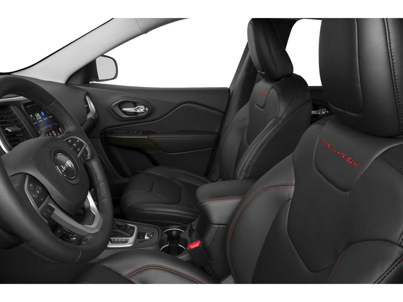 This car is well equipped with the following features: Comfort/Convenience Group (Air Conditioning ATC w/Dual Zone Control, Humidity Sensor, No Satellite Coverage w/AK/HI, Passive Entry/Keyless Go, Power 4-Way Driver Lumbar Adjust, Power 8-Way Driver Seat, Power Liftgate, Premium Air Filter, Rear-View Auto-Dimming Mirror w/Microphone, Remote Proximity Keyless Entry, Remote Start System, Security Alarm, SIRIUSXM Satellite Radio, and Universal Garage Door Opener), Leather Interior Group (Heated Front Seats, Heated Steering Wheel, and Leather Trimmed Bucket Seats), Quick Order Package 27E, Trailer Tow Group (7 & 4 Pin Wiring Harness, Auxiliary Transmission Oil Cooler, Class III Receiver Hitch, Jeep Rack Off Road Accessory Kit, and Trailer Tow Wiring Harness), Ventilated/Heated Seat Group (Accent Color Exterior Mirrors, Exterior Mirrors Courtesy Lamps, Exterior Mirrors w/Heating Element, Exterior Mirrors w/Memory, Exterior Mirrors w/Supplemental Signals, Power Multi-Function Fold Away Mirrors, Premium Leather Trimmed Bucket Seats, Radio/Driver Seat/Exterior Mirrors Memory, and Ventilated Front Seats), 1 Year Trial (Registration Required), 17 x 7.5 Aluminum Wheels, 4-Wheel Disc Brakes, 5-Year SiriusXM Traffic Service, 5-Year SiriusXM Travel Link Service, 6 Speakers, 8.4 Touch Screen Display, 9 Amplified Speakers w/Subwoofer, ABS brakes, Air Conditioning, Alloy wheels, AM/FM radio: SiriusXM, Anti-whiplash front head restraints, Black Hood Decal, Brake assist, Cloth/Leather/Vinyl Bucket Seats, Compass, Delay-off headlights, Driver door bin, Driver vanity mirror, Dual front impact airbags, Dual front side impact airbags, Electronic Stability Control, Emergency communication system, Engine Oil Cooler, Four wheel independent suspension, Front anti-roll bar, Front Bucket Seats, Front Center Armrest, Front fog lights, Front reading lights, Fully automatic headlights, GPS Antenna Input, GPS Navigation, Harman Radio Manufacturer, HD Radio, Illuminated entry, Integrated Voice Command w/Bluetooth®, Knee airbag, Leather Shift Knob, Low tire pressure warning, Manufacturer's Statement of Origin, Occupant sensing airbag, Off Road Suspension, Outside temperature display, Overhead airbag, Overhead console, Panic alarm, ParkView Rear Back-Up Camera, Passenger door bin, Passenger vanity mirror, Power door mirrors, Power Front/Fixed Rear Full Sunroof, Power steering, Power windows, Radio data system, Radio: Uconnect 8.4A AM/FM/SXM/BT, Radio: Uconnect 8.4AN AM/FM/SXM/HD/BT/NAV, Rear anti-roll bar, Rear reading lights, Rear seat center armrest, Rear side impact airbag, Rear window defroster, Rear window wiper, Remote keyless entry, Roof rack: rails only, Single Disc Remote CD Player, SIRIUSXM Traffic, SiriusXM Travel Link, Speed control, Speed-sensing steering, Split folding rear seat, Spoiler, Steering wheel mounted audio controls, Tachometer, Telescoping steering wheel, Tilt steering wheel, Traction control, Trip computer, Uconnect Access, Variably intermittent wipers, and Voltmeter.