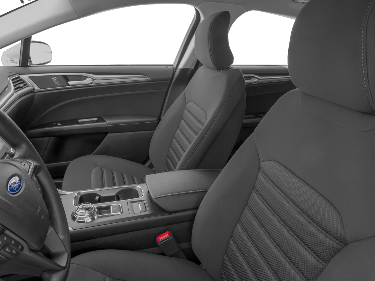 This car is well equipped with the following features: Equipment Group 201A, Fusion SE Appearance Package (Cloth/Vinyl Bolster Seats, Halogen Fog Lamps, Leather-Wrapped Steering Wheel, Rear Spoiler, and Wheels: 18 Magnetic-Painted Aluminum), Fusion SE Technology Package (Dual-Zone Electronic Automatic Temperature Control and SYNC 3 Communications & Entertainment System), 4-Wheel Disc Brakes, 6 Speakers, ABS brakes, Air Conditioning, Alloy wheels, AM/FM radio: SiriusXM, Brake assist, Bumpers: body-color, CD player, Cloth Front Bucket Seats, Compass, Delay-off headlights, Driver door bin, Driver vanity mirror, Dual front impact airbags, Dual front side impact airbags, Electronic Stability Control, Emergency communication system: 911 Assist, Exterior Parking Camera Rear, Four wheel independent suspension, Front anti-roll bar, Front Bucket Seats, Front Center Armrest, Front reading lights, Fully automatic headlights, Illuminated entry, Knee airbag, Low tire pressure warning, Occupant sensing airbag, Outside temperature display, Overhead airbag, Overhead console, Panic alarm, Passenger door bin, Passenger vanity mirror, Power door mirrors, Power driver seat, Power Moonroof, Power passenger seat, Power steering, Power windows, Radio data system, Radio: AM/FM Stereo/MP3/Single-CD, Rear anti-roll bar, Rear reading lights, Rear seat center armrest, Rear window defroster, Remote keyless entry, Security system, SiriusXM Radio, Speed control, Speed-sensing steering, Speed-Sensitive Wipers, Split folding rear seat, Steering wheel mounted audio controls, SYNC Communications & Entertainment System, Tachometer, Telescoping steering wheel, Tilt steering wheel, Traction control, Trip computer, Universal Garage Door Opener, Variably intermittent wipers, Voice-Activated Touchscreen Navigation System, and Wheels: 17 Sparkle Silver Painted Aluminum.