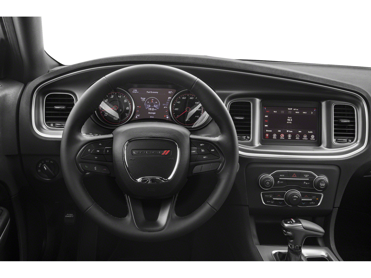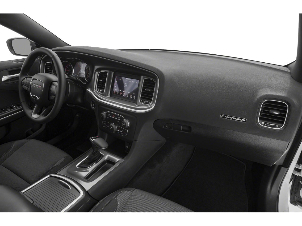 This car is well equipped with the following features: Blacktop Package (Black 1-Piece Performance Spoiler, Dodge Grille Badge, Gloss Black Fascia Applique, Gloss Black I/P Cluster Trim Rings, and Satin Black Charger Decklid Badge), Quick Order Package 29G, 4-Wheel Disc Brakes, 6 Speakers, ABS brakes, Air Conditioning, Alloy wheels, AM/FM radio: SiriusXM, Anti-whiplash front head restraints, Apple CarPlay/Android Auto, Brake assist, Bumpers: body-color, Cloth Sport Seat, Compass, Delay-off headlights, Driver door bin, Driver vanity mirror, Dual front impact airbags, Dual front side impact airbags, Electronic Stability Control, Four wheel independent suspension, Front anti-roll bar, Front Bucket Seats, Front Center Armrest, Front dual zone A/C, Front reading lights, Fully automatic headlights, Illuminated entry, Knee airbag, Leather Shift Knob, Low tire pressure warning, Occupant sensing airbag, Outside temperature display, Overhead airbag, Overhead console, Panic alarm, ParkView Rear Back-Up Camera, Passenger door bin, Passenger vanity mirror, Power 4-Way Driver Lumbar Adjust, Power door mirrors, Power driver seat, Power steering, Power windows, Radio: Uconnect 4 w/7 Display, Rear anti-roll bar, Rear Armrest w/Cupholder Seat, Rear reading lights, Rear seat center armrest, Rear window defroster, Remote keyless entry, Speed control, Speed-Sensitive Wipers, Split folding rear seat, Steering wheel mounted audio controls, Tachometer, Telescoping steering wheel, Tilt steering wheel, Traction control, Trip computer, Variably intermittent wipers, Wheels: 17 x 7.0 Painted Cast Aluminum, and Wheels: 20 x 8.0 Black Noise Painted.