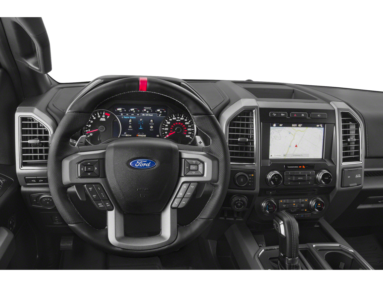 Step inside and you'll be surrounded by a wealth of premium features, including a voice-activated touchscreen navigation system, Bang & Olufsen premium audio, and a suite of advanced safety technologies like Blind Spot Information System, Adaptive Cruise Control, and Pro Trailer Backup Assist. The Raptor's cabin is also outfitted with luxurious touches like heated leather seats, a heated steering wheel, and ambient lighting, ensuring your every journey is both comfortable and stylish.