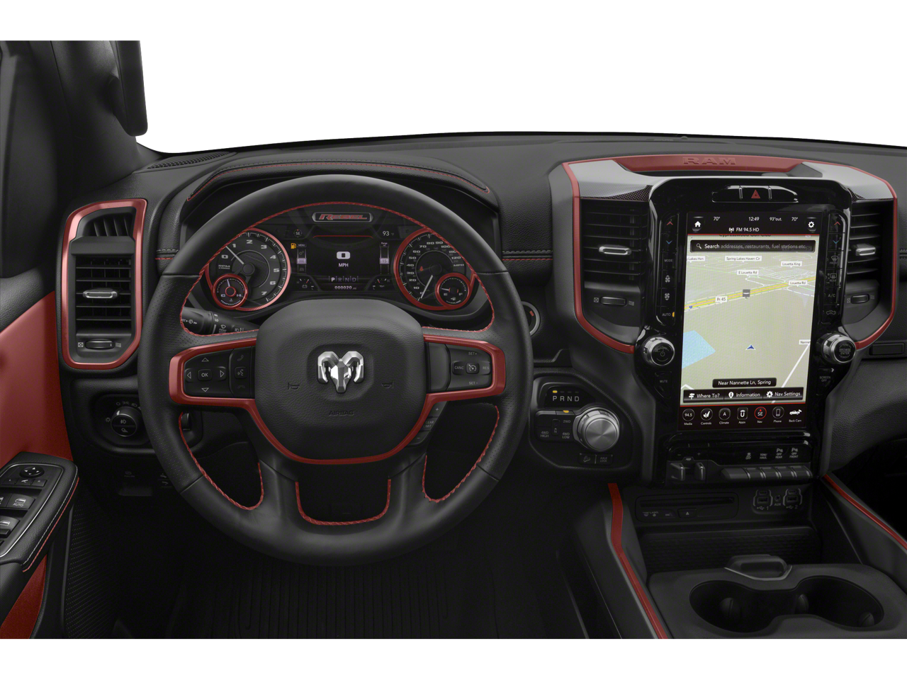 This car is well equipped with the following features: Quick Order Package 25M Limited, 10 Speakers, 3.21 Rear Axle Ratio, 4-Wheel Disc Brakes, 48V Belt Starter Generator, ABS brakes, Adjustable pedals, Air Conditioning, Alloy wheels, AM/FM radio: SiriusXM with 360L, Apple CarPlay/Android Auto, Audio memory, Auto High-beam Headlights, Auto-dimming door mirrors, Auto-dimming Rear-View mirror, Auto-leveling suspension, Automatic temperature control, Bodyside moldings, Brake assist, Bumpers: chrome, Compass, Delay-off headlights, Delete Spray In Bedliner, Driver door bin, Driver vanity mirror, Dual front impact airbags, Dual front side impact airbags, Electronic Stability Control, Emergency communication system: SiriusXM Guardian, Front anti-roll bar, Front Bucket Seats, Front Center Armrest w/Storage, Front dual zone A/C, Front fog lights, Front reading lights, Front wheel independent suspension, Fully automatic headlights, Garage door transmitter, Genuine wood console insert, Genuine wood dashboard insert, Genuine wood door panel insert, Heated door mirrors, Heated front seats, Heated rear seats, Heated steering wheel, Illuminated entry, Leather steering wheel, Low tire pressure warning, Memory seat, Navigation System, Occupant sensing airbag, Outside temperature display, Overhead airbag, Overhead console, Panic alarm, ParkView Rear Back-Up Camera, Passenger door bin, Passenger vanity mirror, Pedal memory, Power door mirrors, Power driver seat, Power passenger seat, Power steering, Power windows, Premium Leather Trimmed Bucket Seats, Radio data system, Radio: Uconnect 12 w/Navigation, Rain sensing wipers, Rear anti-roll bar, Rear seat center armrest, Rear step bumper, Rear window defroster, Remote keyless entry, Security system, Speed control, Split folding rear seat, Steering wheel mounted audio controls, Tachometer, Telescoping steering wheel, Tilt steering wheel, Traction control, Trip computer, Turn signal indicator mirrors, Variably intermittent wipers, Ventilated front seats, Voltmeter, and Wheels: 20 x 9 Polished w/Inserts.