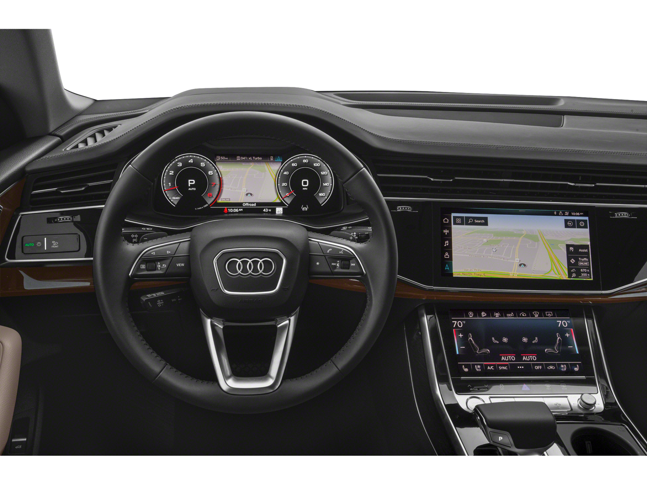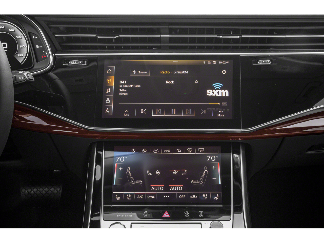 This car is well equipped with the following features: 10 Speakers, 21 5-Segment-Spoke-Design Wheels, 4-Wheel Disc Brakes, ABS brakes, Adaptive suspension, Air Conditioning, Alloy wheels, AM/FM radio: SiriusXM, Audi smartphone interface (Apple CarPlay/Android Auto), Auto High-beam Headlights, Auto-dimming door mirrors, Auto-dimming Rear-View mirror, Automatic temperature control, Axle Ratio: TBD, Brake assist, Bumpers: body-color, Compass, Delay-off headlights, Driver door bin, Driver vanity mirror, Dual front impact airbags, Dual front side impact airbags, Electronic Stability Control, Emergency communication system: Audi connect CARE, PRIME & PLUS, Exterior Parking Camera Rear, Four wheel independent suspension, Front anti-roll bar, Front Bucket Seats, Front Center Armrest, Front dual zone A/C, Front fog lights, Front reading lights, Fully automatic headlights, Garage door transmitter: HomeLink, Genuine wood door panel insert, Heated door mirrors, Heated Front Bucket Seats, Heated front seats, Illuminated entry, Leather Seating Surfaces, Leather Shift Knob, Leather steering wheel, Low tire pressure warning, Memory seat, Navigation system: Audi MMI Navigation plus with Touch Response, Occupant sensing airbag, Outside temperature display, Overhead airbag, Overhead console, Panic alarm, Passenger door bin, Passenger vanity mirror, Power door mirrors, Power driver seat, Power Liftgate, Power moonroof: Panoramic, Power passenger seat, Power steering, Power windows, Radio data system, Radio: MMI Nav Plus w/MMI Touch Response, Rain sensing wipers, Rear air conditioning, Rear anti-roll bar, Rear fog lights, Rear reading lights, Rear seat center armrest, Rear side impact airbag, Rear window defroster, Rear window wiper, Remote keyless entry, Roof rack: rails only, Security system, Speed control, Speed-sensing steering, Split folding rear seat, Spoiler, Steering wheel memory, Steering wheel mounted audio controls, Tachometer, Telescoping steering wheel, Tilt steering wheel, Traction control, Trip computer, Turn signal indicator mirrors, and Variably intermittent wipers.