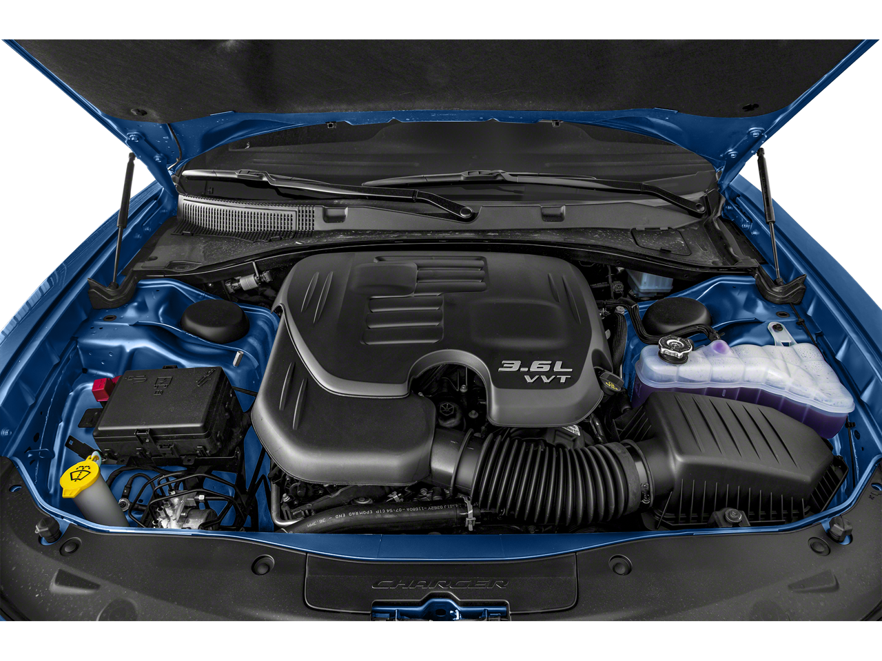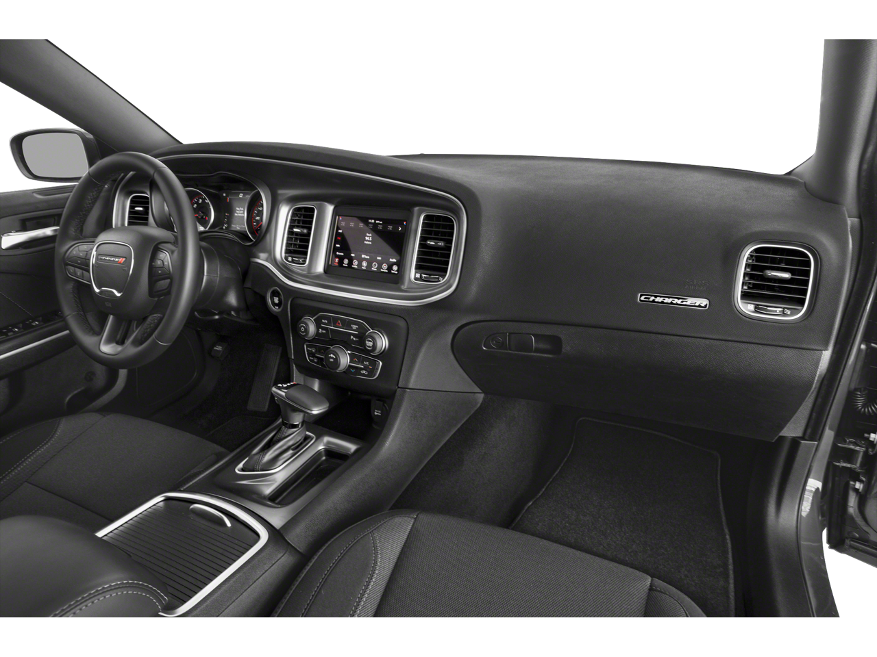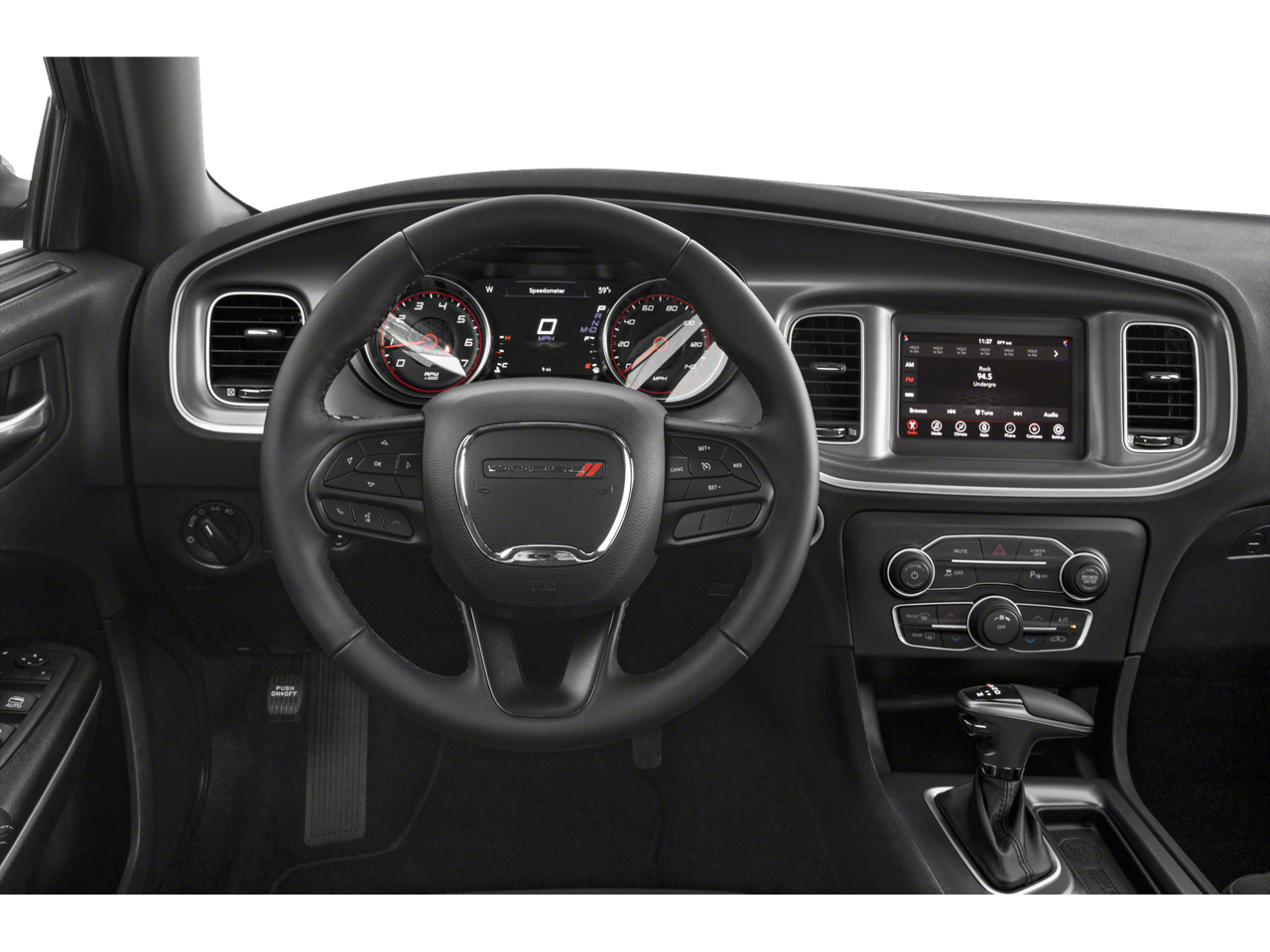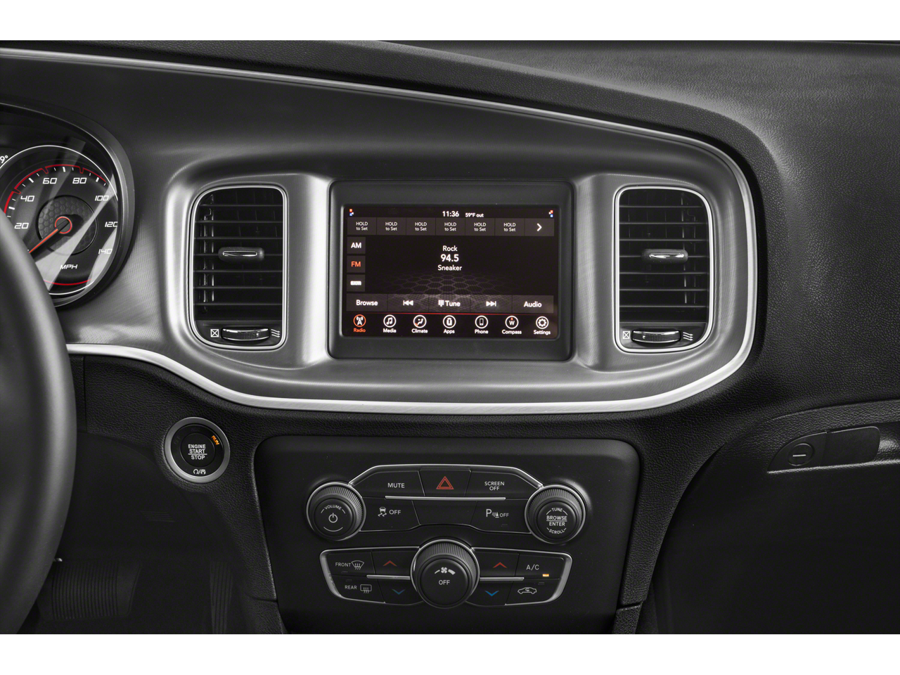 This car is well equipped with the following features: Blacktop Package (Black 1-Piece Performance Spoiler, Dodge Grille Badge, Gloss Black Fascia Applique, Gloss Black I/P Cluster Trim Rings, Rhombi 2-Pc Wheel Center Cap, Satin Black Charger Decklid Badge, and Satin Black Dodge Tail Lamp Badge), Quick Order Package 2EG, 4-Wheel Disc Brakes, 6 Speakers, ABS brakes, Air Conditioning, Alloy wheels, AM/FM radio: SiriusXM, Anti-whiplash front head restraints, Apple CarPlay, Apple CarPlay/Android Auto, Body Color Exterior Mirrors, Brake assist, Bumpers: body-color, Cloth Sport Seat, Compass, Delay-off headlights, Driver door bin, Driver vanity mirror, Dual front impact airbags, Dual front side impact airbags, Electronic Stability Control, Four wheel independent suspension, Front anti-roll bar, Front Bucket Seats, Front Center Armrest, Front dual zone A/C, Front reading lights, Fully automatic headlights, Google Android Auto, GPS Antenna Input, Illuminated entry, Integrated Center Stack Radio, Integrated Voice Command w/Bluetooth®, Knee airbag, Leather Shift Knob, Low tire pressure warning, Media Hub (2 USB, AUX), Occupant sensing airbag, Outside temperature display, Overhead airbag, Overhead console, Panic alarm, ParkView Rear Back-Up Camera, Passenger door bin, Passenger vanity mirror, Power 2-Way Driver Lumbar Adjust, Power 8-Way Driver Seat, Power door mirrors, Power driver seat, Power steering, Power windows, Radio: Uconnect 4 w/7 Display, Rear anti-roll bar, Rear Armrest w/Cupholder Seat, Rear reading lights, Rear seat center armrest, Rear window defroster, Remote keyless entry, Speed control, Speed-Sensitive Wipers, Split folding rear seat, Steering wheel mounted audio controls, Tachometer, Telescoping steering wheel, Tilt steering wheel, Traction control, Trip computer, USB Host Flip, Variably intermittent wipers, Wheels: 17 x 7 Painted Cast Aluminum, and Wheels: 20 x 8 Black Noise Painted.