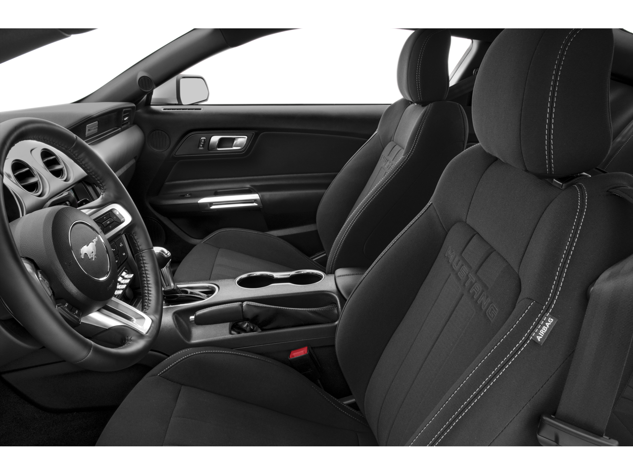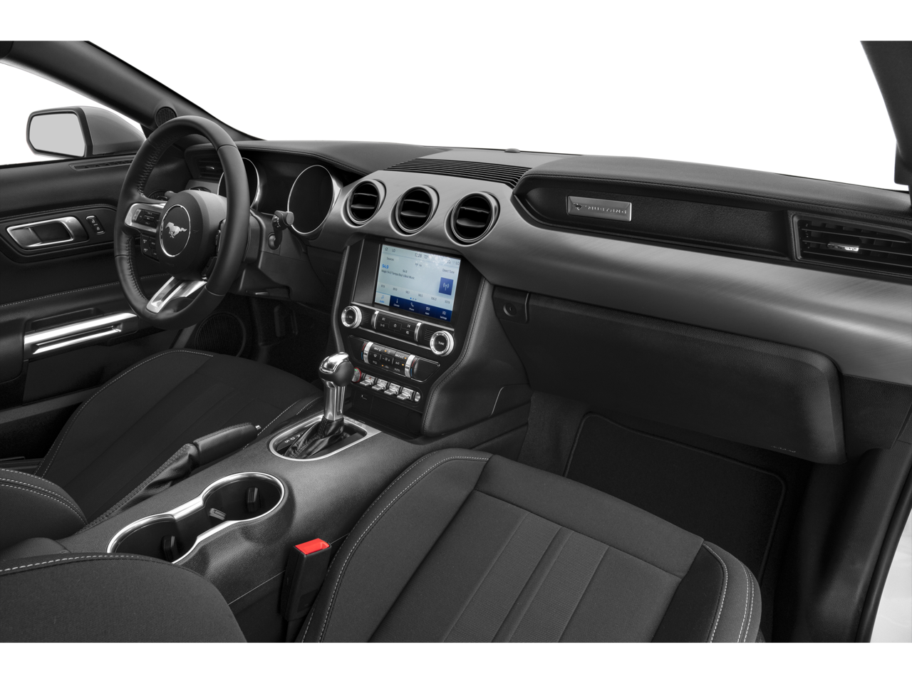 The interior of this Mustang GT Premium is equally impressive, with a 12 LCD Digital Instrument Cluster, Heated Steering Wheel, and Memory Driver Seat, Mirrors & Ambient Lighting. The Leather-Trimmed Bucket Seats with Color Accents and Angled Brush Aluminum Instrument Panel create a truly premium and personalized environment.