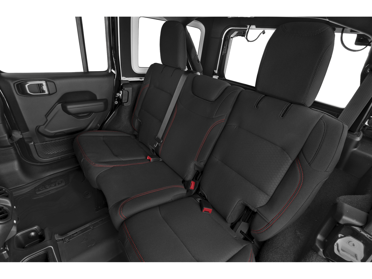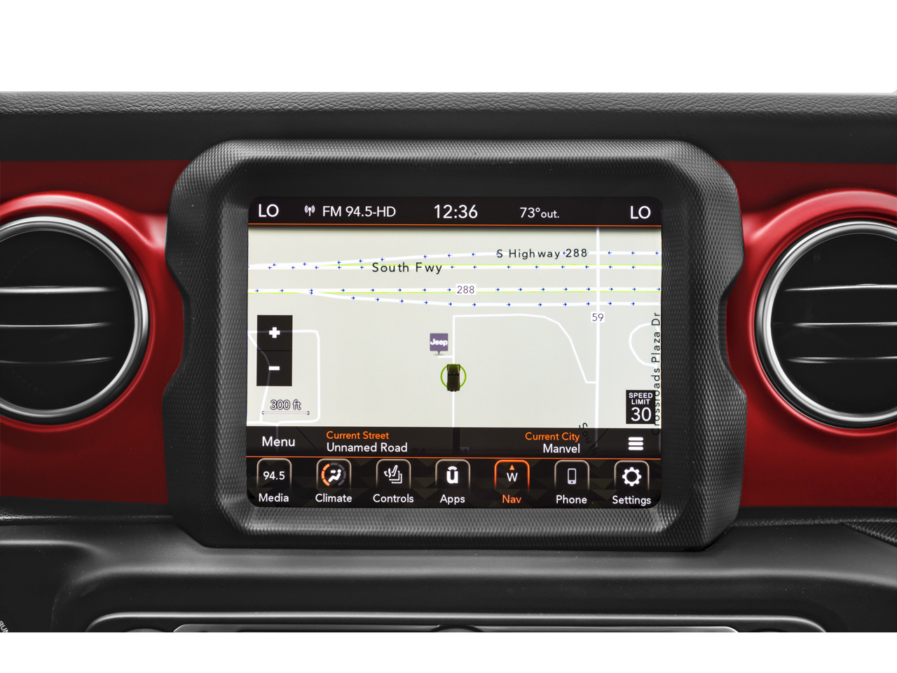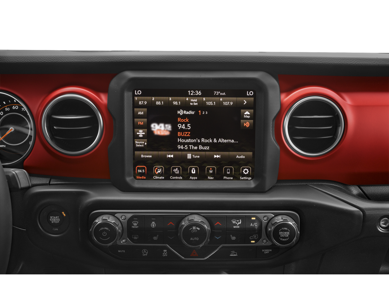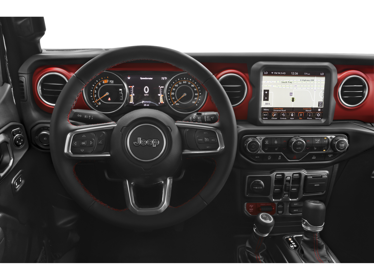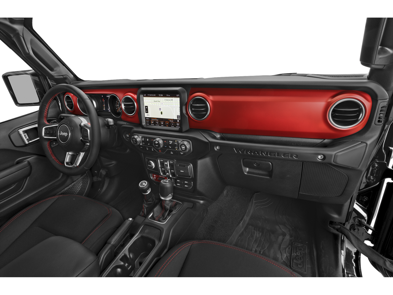 This car is well equipped with the following features: Quick Order Package 25R Rubicon, 4-Wheel Disc Brakes, 4.10 Rear Axle Ratio, 9 Speakers, ABS brakes, Air Conditioning, Alloy wheels, AM/FM radio: SiriusXM, Apple CarPlay/Android Auto, Auto-dimming Rear-View mirror, Automatic temperature control, Aux Battery, Black 3-Piece Hard Top, Brake assist, Compass, Delay-off headlights, Driver door bin, Driver vanity mirror, Dual front impact airbags, Dual front side impact airbags, Electronic Stability Control, Emergency communication system: SiriusXM Guardian, Engine Oil Cooler, Freedom Panel Storage Bag, Front anti-roll bar, Front Bucket Seats, Front Center Armrest w/Storage, Front Differential Electronic Lock w/Axle Disconnect, Front dual zone A/C, Front fog lights, Front License Plate Bracket, Front reading lights, Fully automatic headlights, Garage door transmitter, Heated door mirrors, Illuminated entry, Integrated roll-over protection, Low tire pressure warning, MOPAR All-Weather Floor Mats, Navigation System, No Soft Top, Non-Lock Fuel Cap w/o Discriminator, Occupant sensing airbag, Outside temperature display, Panic alarm, ParkView Rear Back-Up Camera, Passenger door bin, Passenger vanity mirror, Performance Suspension, Power door mirrors, Power steering, Power windows, Premium Cloth Low-Back Bucket Seats, Radio data system, Radio: Uconnect 4C Nav w/8.4 Display, Rear anti-roll bar, Rear reading lights, Rear Window Defroster, Rear Window Wiper/Washer, Remote keyless entry, Security system, Speed control, Split folding rear seat, Steering wheel mounted audio controls, Stop-Start Dual Battery System, Tachometer, Telescoping steering wheel, Tilt steering wheel, Traction control, Trip computer, Variably intermittent wipers, Voltmeter, Wheels: 17 x 7.5 Machined w/Black Pockets, and Wheels: 17 x 7.5 Machined/Painted Black.