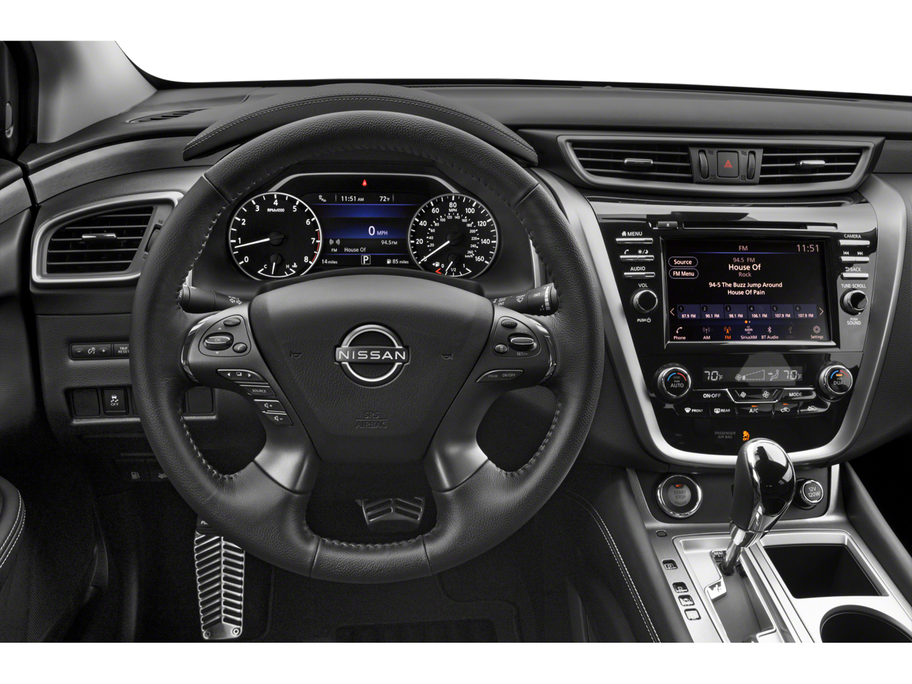 This car is well equipped with the following features: 4-Wheel Disc Brakes, 4.667 Axle Ratio, 6 Speakers, ABS brakes, Air Conditioning, Alloy wheels, AM/FM radio: SiriusXM, AM/FM/CD/MP3/WMA Audio System, Auto High-beam Headlights, Auto-dimming Rear-View mirror, Automatic temperature control, Blind Spot Warning, Brake assist, Bumpers: body-color, Carpeted Floor Mats & Carpeted Cargo Mat, CD player, Child-Seat-Sensing Airbag, Delay-off headlights, Driver door bin, Driver vanity mirror, Dual front impact airbags, Dual front side impact airbags, Electronic Stability Control, Four wheel independent suspension, Front anti-roll bar, Front Bucket Seats, Front Center Armrest, Front dual zone A/C, Front fog lights, Front reading lights, Fully automatic headlights, Heated door mirrors, Heated Front Bucket Seats, Heated front seats, Illuminated entry, Knee airbag, Leatherette-Appointed Seat Trim, Low tire pressure warning, NissanConnect featuring Apple CarPlay and Android Auto, Occupant sensing airbag, Outside temperature display, Overhead airbag, Overhead console, Panic alarm, Passenger door bin, Passenger vanity mirror, Power door mirrors, Power driver seat, Power passenger seat, Power steering, Power windows, Radio data system, Rear anti-roll bar, Rear reading lights, Rear seat center armrest, Rear side impact airbag, Rear window defroster, Rear window wiper, Remote keyless entry, Security system, Speed control, Speed-sensing steering, Speed-Sensitive Wipers, Split folding rear seat, Spoiler, Steering wheel mounted audio controls, Tachometer, Telescoping steering wheel, Tilt steering wheel, Traction control, Trip computer, Turn signal indicator mirrors, Variably intermittent wipers, and Wheels: 18 Machined Aluminum-Alloy.