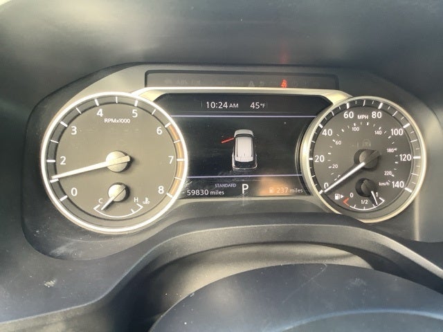 This car is well equipped with the following features: 18 Aluminum Alloy Wheels, 4-Wheel Disc Brakes, 5.604 Axle Ratio, 6 Speakers, ABS brakes, Air Conditioning, Alloy wheels, AM/FM Radio, AM/FM radio: SiriusXM, Auto High-beam Headlights, Automatic temperature control, Brake assist, Bumpers: body-color, Cloth Seat Trim, Delay-off headlights, Driver door bin, Driver vanity mirror, Dual front impact airbags, Dual front side impact airbags, Electronic Stability Control, Emergency communication system: NissanConnect Services, Floor Mats w/1-Piece Cargo Area Protector, Four wheel independent suspension, Front anti-roll bar, Front Bucket Seats, Front Center Armrest, Front dual zone A/C, Front reading lights, Fully automatic headlights, Heated door mirrors, Illuminated entry, Knee airbag, Low tire pressure warning, NissanConnect featuring Apple CarPlay and Android Auto, Occupant sensing airbag, Outside temperature display, Overhead airbag, Overhead console, Panic alarm, Passenger door bin, Passenger vanity mirror, Power door mirrors, Power driver seat, Power steering, Power windows, Radio data system, Rear anti-roll bar, Rear Parking Sensors, Rear seat center armrest, Rear side impact airbag, Rear window defroster, Rear window wiper, Remote keyless entry, Speed control, Speed-Sensitive Wipers, Split folding rear seat, Spoiler, Steering wheel mounted audio controls, Tachometer, Telescoping steering wheel, Tilt steering wheel, Traction control, Trip computer, and Variably intermittent wipers.