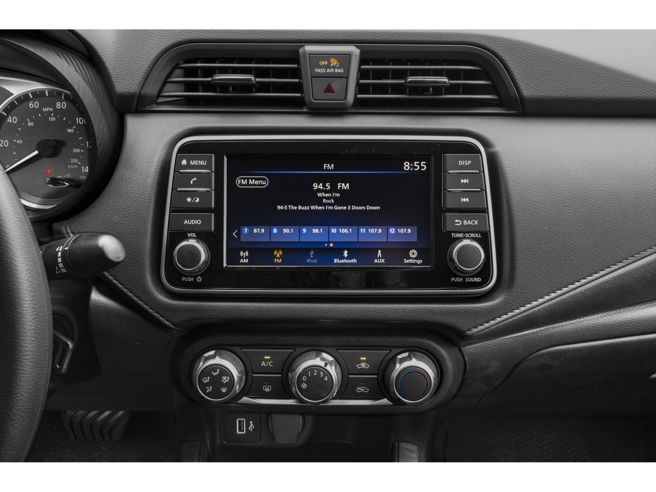- Radio: AM/FM Audio System -inc: RDS, MP3, aux-in, 7" color touchscreen display, Bluetooth hands-free phone system, streaming audio via Bluetooth, interface for iPod and other compatible devices, hands-free text messaging assistant, Siri Eyes Free/Google Assistant voice recognition, 4 speakers, 12-volt DC power outlet and 3 USB ports (2-charge only)