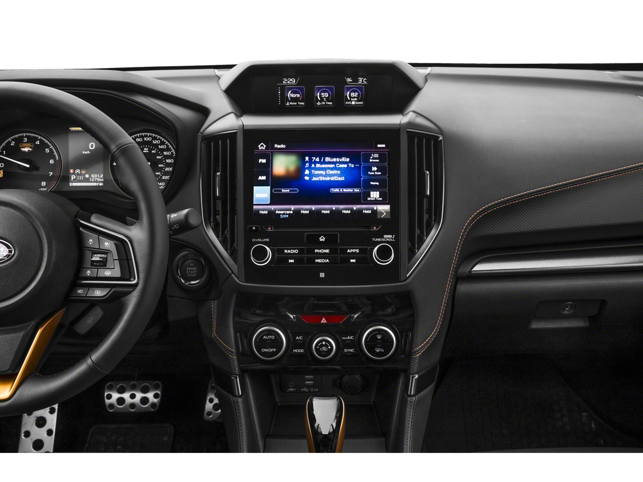 This car is well equipped with the following features: 8 Audio w/harman/kardon & Power Rear Gate (harman/kardon 9-Speaker Audio System, Power Rear Gate, and Radio: Subaru Starlink 8.0 Multimedia Nav System), 4-Wheel Disc Brakes, 4.11 Axle Ratio, 6 Speakers, ABS brakes, Air Conditioning, Alloy wheels, AM/FM radio: SiriusXM, Anti-whiplash front head restraints, Auto High-beam Headlights, Auto-Dimming Exterior Mirror w/Approach Light, Auto-Dimming Mirror w/Compass & HomeLink, Automatic temperature control, Brake assist, Bumpers: body-color, CD player, Door Scuff Protector - Wilderness, Driver door bin, Driver vanity mirror, Dual front impact airbags, Dual front side impact airbags, Electronic Stability Control, Emergency communication system: STARLINK Safety and Security (Subscription Required), Exterior Parking Camera Rear, Footwell Illumination Kit, Four wheel independent suspension, Front anti-roll bar, Front Bucket Seats, Front Center Armrest, Front dual zone A/C, Front fog lights, Front reading lights, Fully automatic headlights, Heated door mirrors, Heated Front Bucket Seats, Heated front seats, Illuminated entry, Knee airbag, Leather Shift Knob, Low tire pressure warning, Navigation System, Occupant sensing airbag, Outside temperature display, Overhead airbag, Overhead console, Panic alarm, Passenger door bin, Passenger vanity mirror, Power door mirrors, Power driver seat, Power moonroof: Panoramic, Power steering, Power windows, Radio data system, Radio: Subaru Starlink 8.0 Multimedia Plus System, Rear anti-roll bar, Rear Bumper Cover, Rear seat center armrest, Rear Seatback Protector - Wilderness, Rear window defroster, Rear window wiper, Remote keyless entry, Roof rack: rails only, Security system, Speed control, Speed-sensing steering, Splash Guards - Wilderness, Split folding rear seat, Spoiler, STARLINK/Apple CarPlay/Android Auto, Steering wheel mounted audio controls, Sunshade - Windshield, Tachometer, Telescoping steering wheel, Textured StarTex Upholstery, Tilt steering wheel, Traction control, Trip computer, Turn signal indicator mirrors, Variably intermittent wipers, and Wheels: 17 x 7.0 J Matte Black Finish Alum-Alloy.